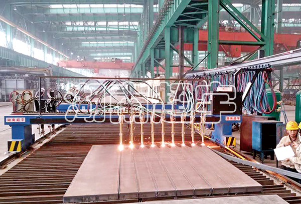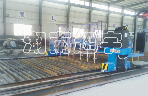 我公司生产的龙门式数控火焰多头直条切割机是为配套金属结构件加工制造的一种高效率钢板自动切割下料设备。该机可纵向和横向直线切割,也可圆弧曲线的任意切割,切割表面光洁度及精度高,变形小,具有结构合理,操作简单,工艺先进等优点。